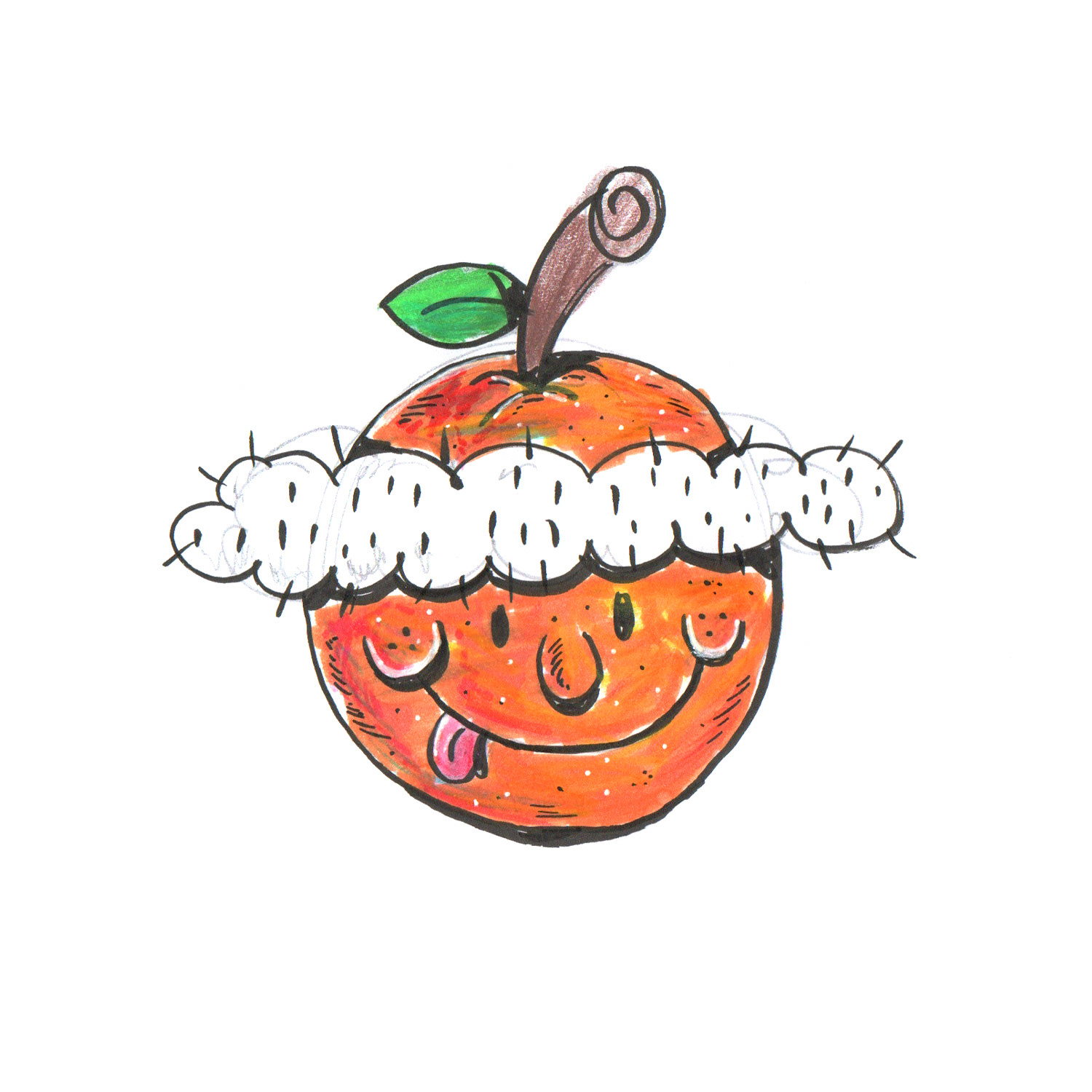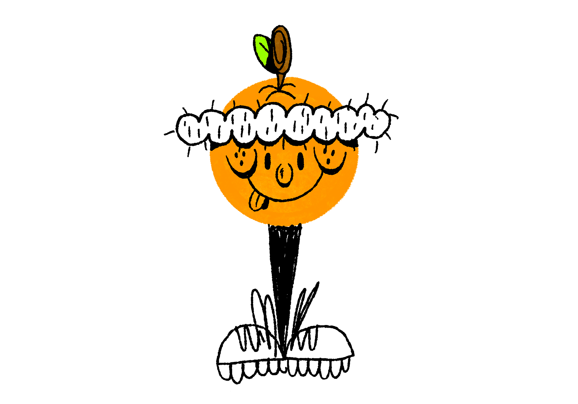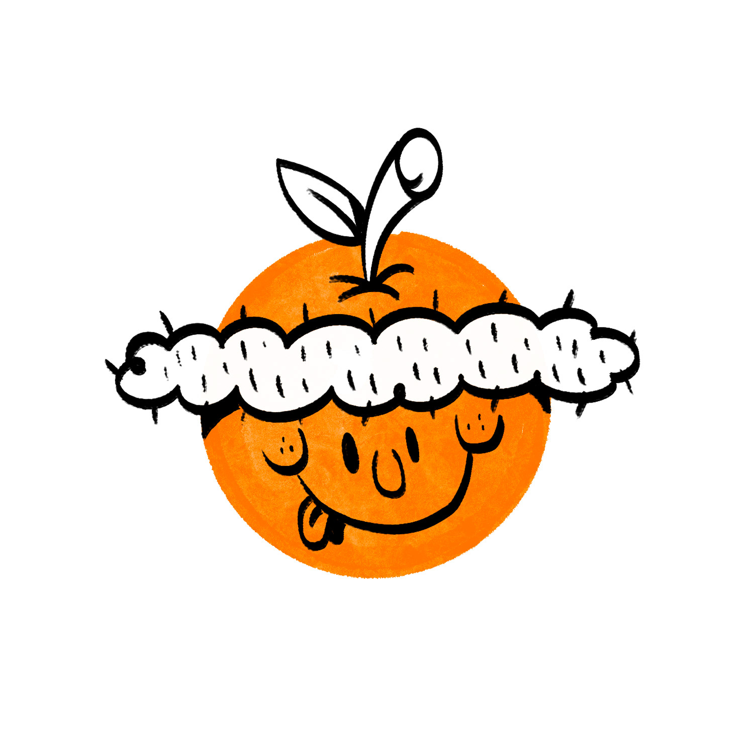 Primeiro veio o nome e, com ele, surgiu uma grande necessidade de criar uma mascote para o grupo. Então, comecei a rascunhar algumas ideias de laranja. Após muitos testes e camadas refeitas, cheguei a esta versão final.
