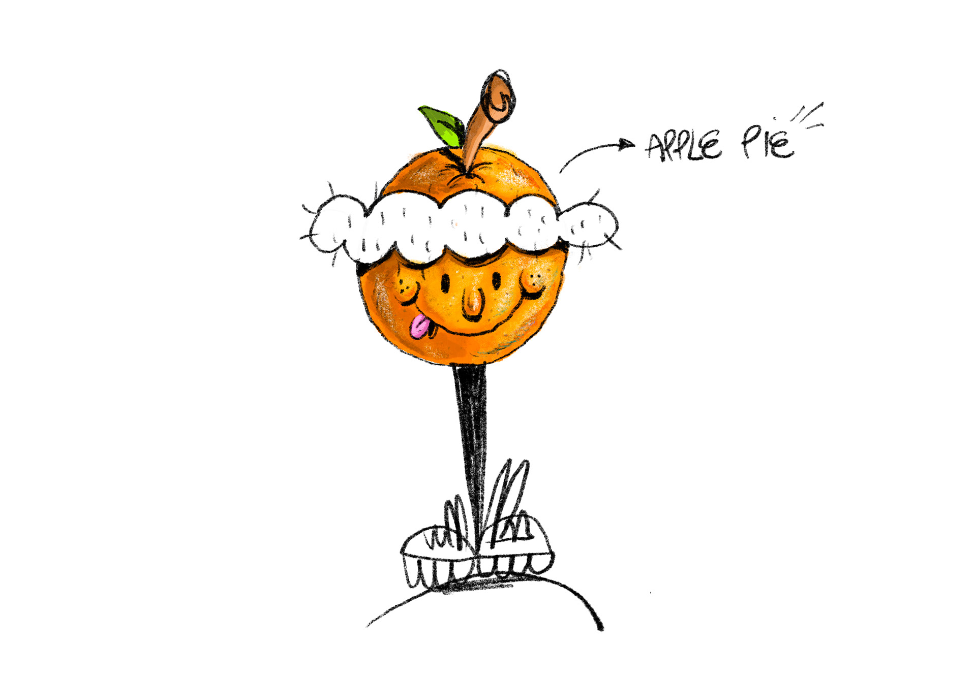 Após encontrar a forma final do Apple Pie e definir todas as suas características, comecei a me aventurar em traços e estilos para, pouco a pouco, ir consolidando o personagem.